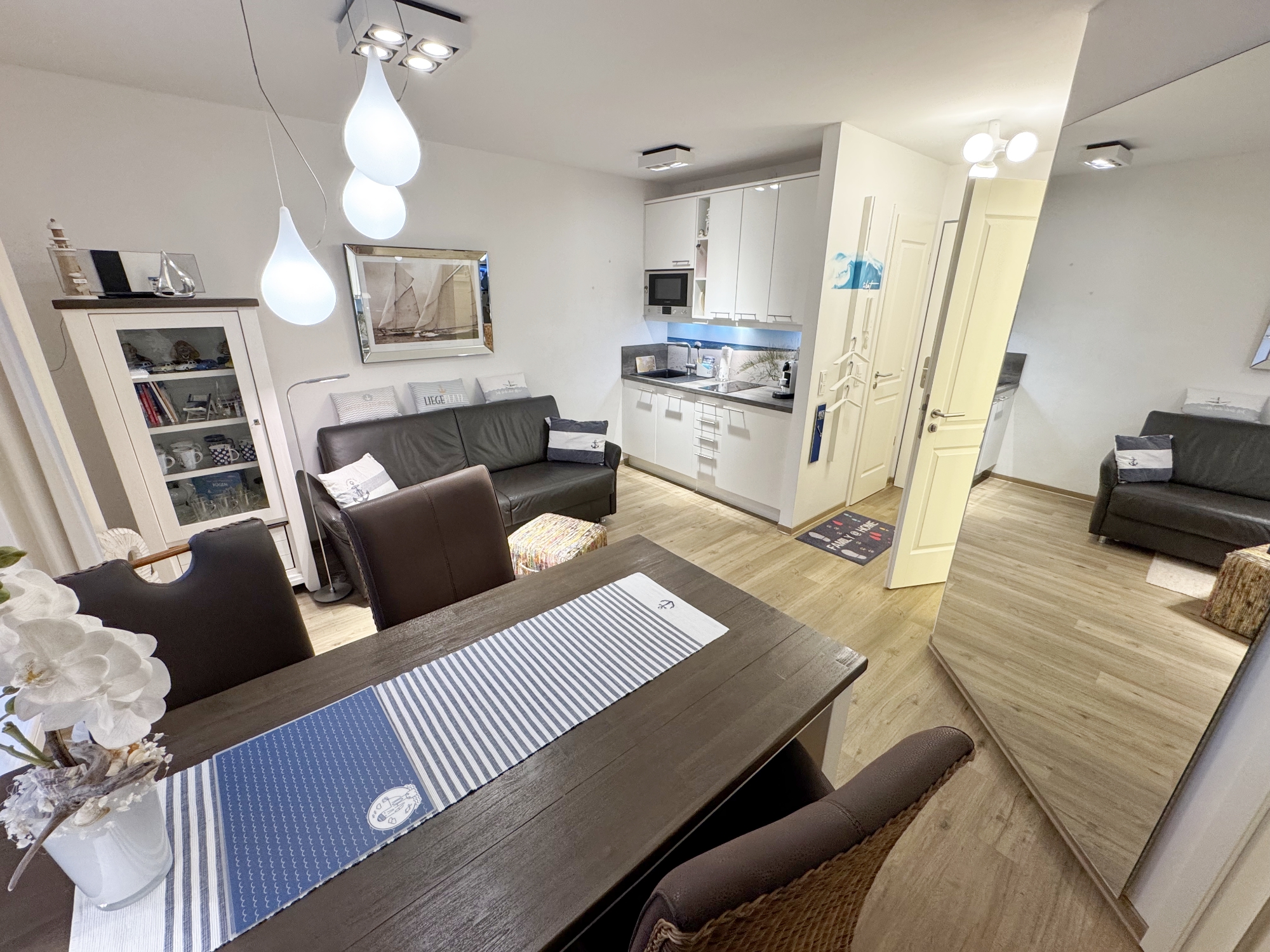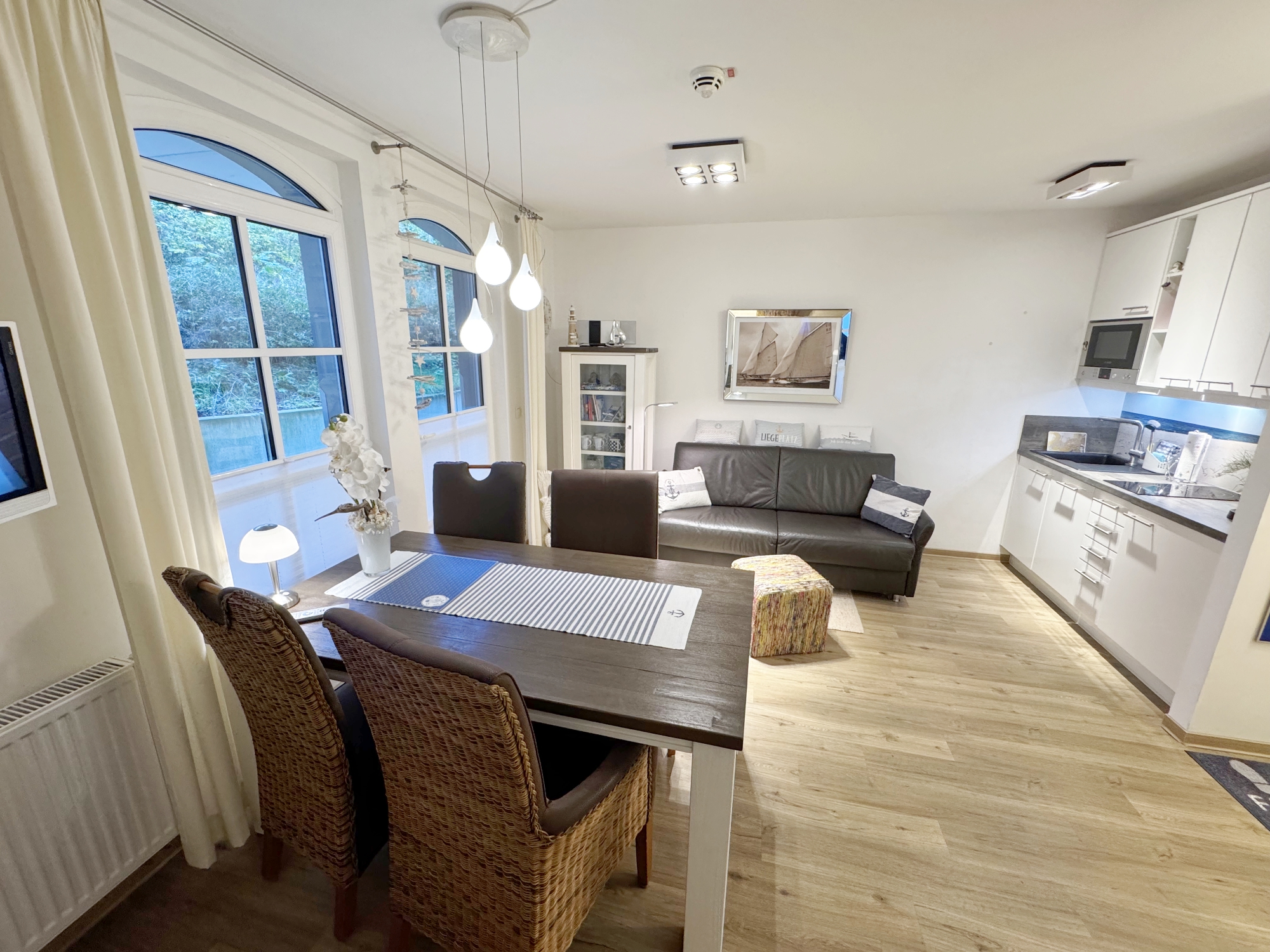 Das idyllische Ostseebad Baabe liegt im südöstlichen Teil der Insel Rügen, eingebettet auf der malerischen Halbinsel Mönchgut. Das ehemalige Fischerdorf mit seinem historischen Dorfkern hat sich seinen ursprünglichen Charme bewahrt und verbindet Tradition mit modernem Urlaubsflair. Besonders geschätzt wird der feine und weitläufige Sandstrand, der sich sanft entlang der Ostseeküste erstreckt. Der lange Strandabschnitt lädt zu ausgedehnten Spaziergängen zwischen den Ostseebädern Sellin, Baabe und Göhren ein – immer begleitet vom beruhigenden Rauschen der Wellen. Ein gut ausgebautes Fahrradwegenetz ermöglicht es, die Halbinsel Mönchgut komfortabel zu erkunden. Die Routen führen von Göhren durch das Naturschutzgebiet Baaber Heide und die Granitz bis hin zu den benachbarten Ostseebädern Sellin und Binz – ideal für Naturfreunde und Aktivurlauber. Im Ort selbst finden Besucher eine vielfältige Auswahl an Restaurants, Cafés, Bäckern und Supermärkten, die bequem zu Fuß erreichbar sind. Darüber hinaus bietet das Ostseebad Baabe rund ums Jahr, insbesondere an Feiertagen, eine bunte Auswahl kultureller Veranstaltungen. Der Kurpark von Baabe bildet dabei das Herz des kulturellen Lebens – mit seiner Freilichtbühne, auf der regelmäßige Konzerte stattfinden. Die Ferienwohnung „Dinghy“ befindet sich im Erdgeschoss des Apartmenthauses „Haus Meeresblick“ und überzeugt durch ihren barrierefreien Zugang sowie ihre hervorragende Lage – nur etwa 80 Meter vom feinen Sandstrand entfernt.Das Ostseebad Baabe vereint Erholung, Natur und norddeutsche Lebensart auf besondere Weise.