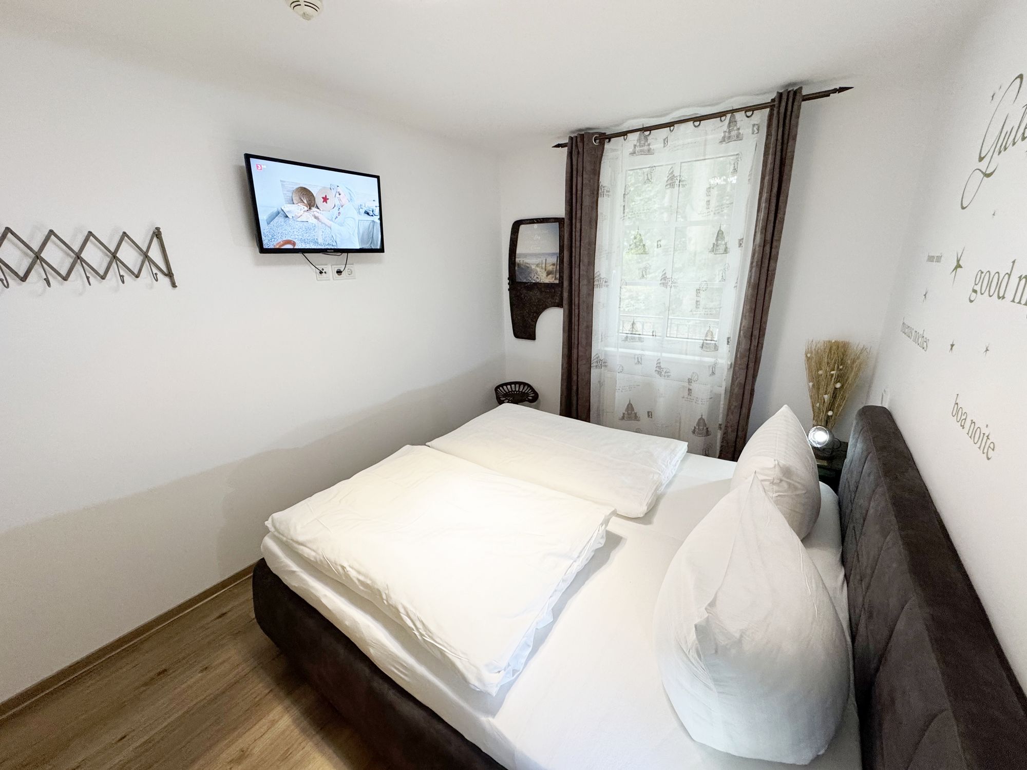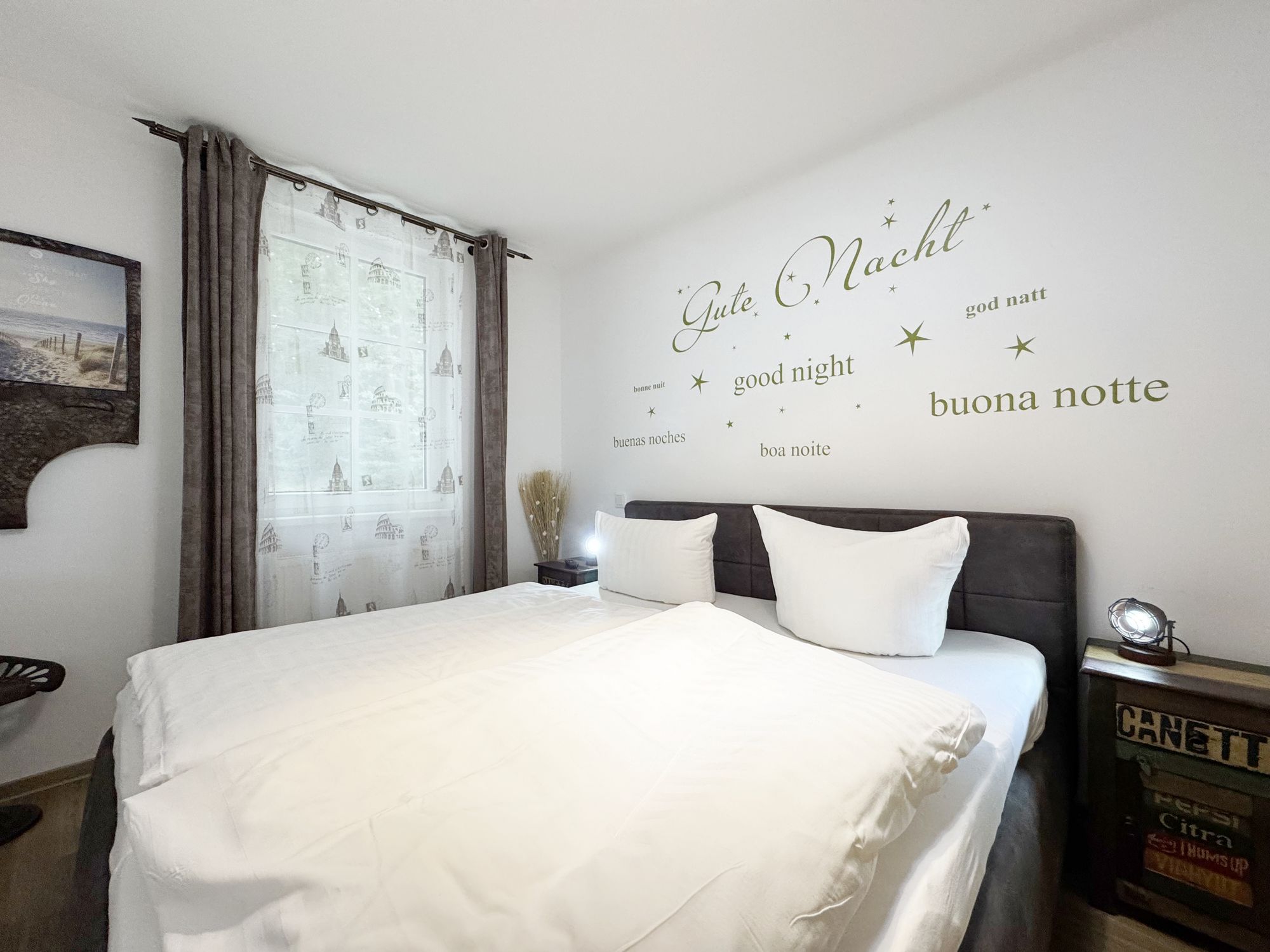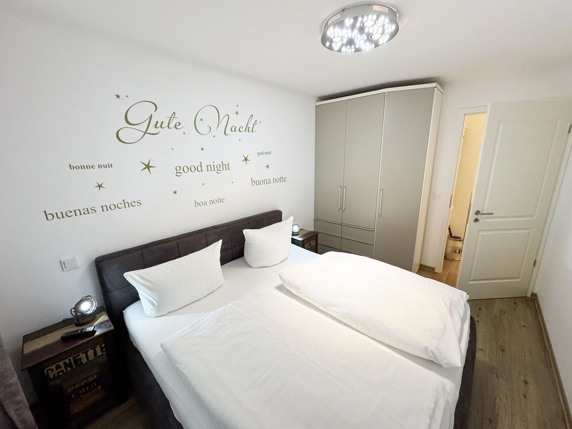 - Schlafzimmer mit Doppelbett (1,80 m x 2,00 m), Komfort- Wendematratzen (HG 3 & 4), Nachttischablagen, geräumiger Kleiderschrank, Flachbild TV sowie Insektenschutzgitter