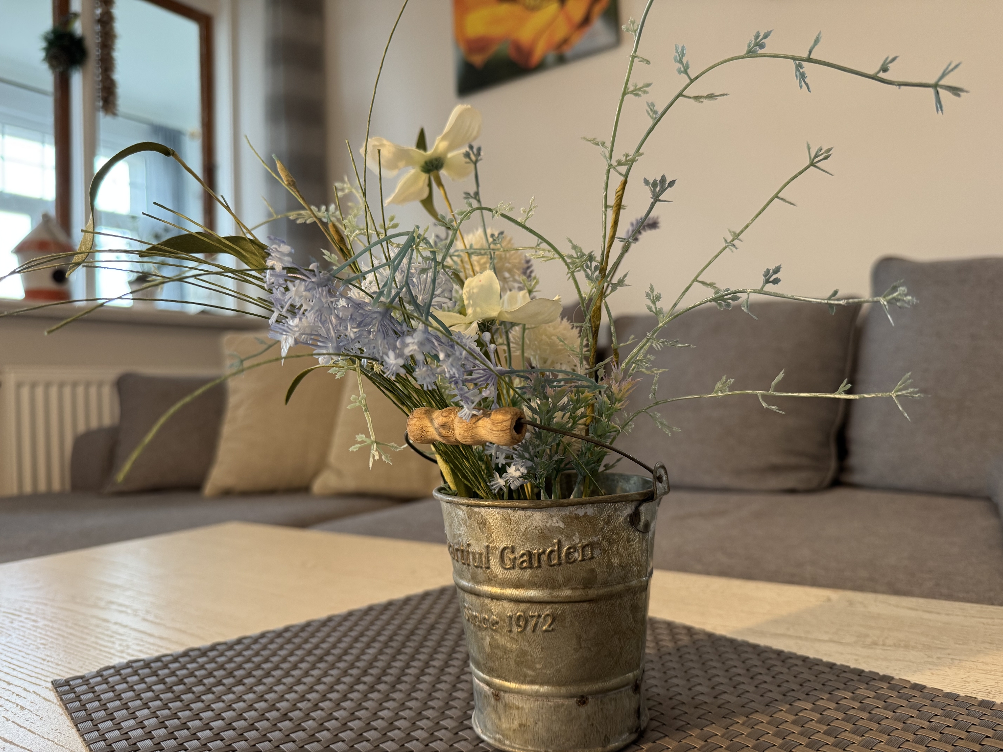 - Wohnzimmer mit Flachbild-TV und Radio mit Bluetooth, gemütlicher Couchbereich (Aufbettungsmöglichkeit für 5. Person - 1,40m x 2,00m), Couchtisch, Leselampe, Lesesessel und Sideboard